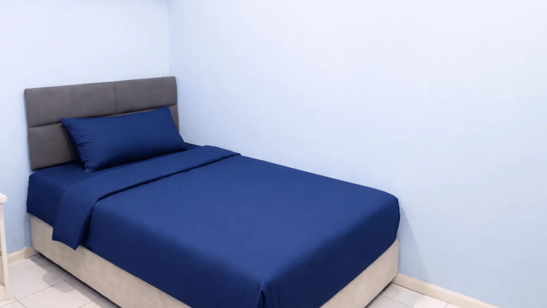 1 bed, wardrobe, fan (no window and larger room)